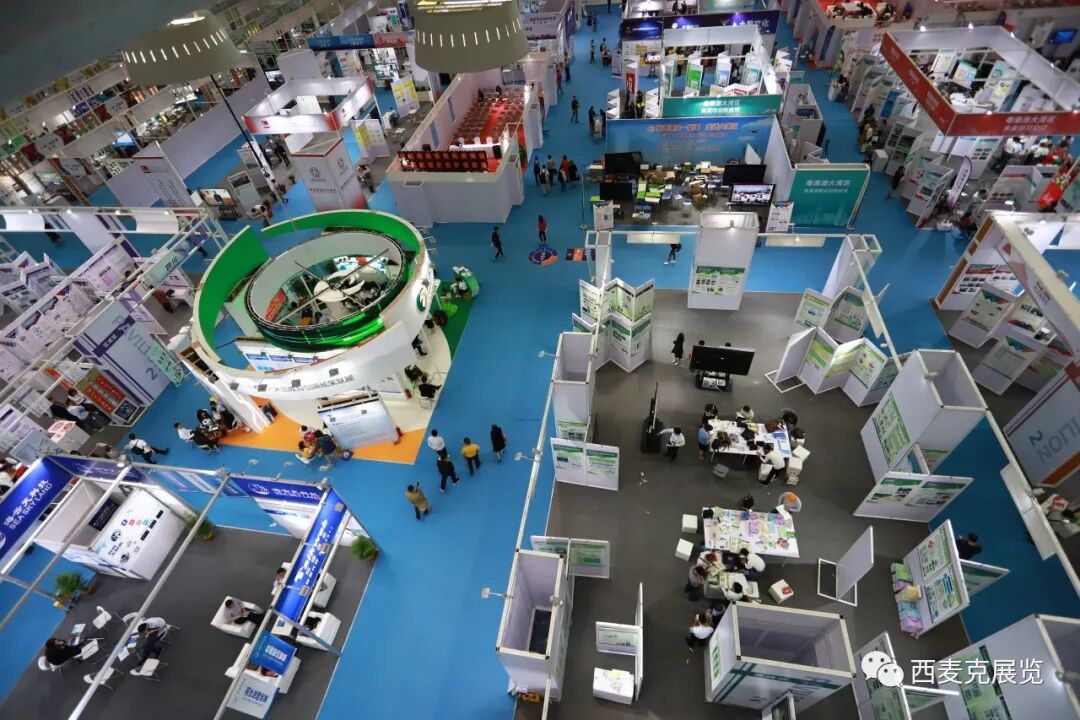 2、展位搭建由于时间紧迫,PCO西麦克同时作主场运营、展览展示搭建单位,使用标准化铝型材,在传统标准展位的基础上,依据成果方的各异特点,塑造出多种个性化造型,在极短时间内呈现了接近特装的视觉效果。同时,为成果方提供了个性化的展板定制设计服务,不少成果方表示希望将展板带回学校继续展示。